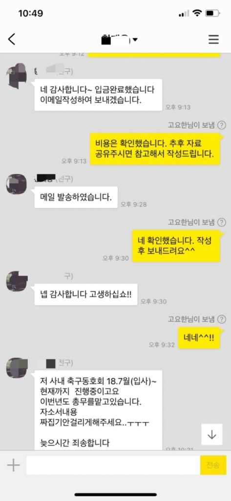 >> 1단계: 문의 (자소서 초안 및 채용 공고 전달)
