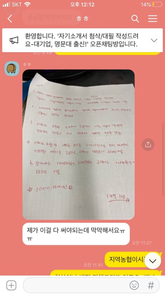 글자수가 너무 적어서 작성하기 어려웠을텐데 기업 분석부터 제 경험 파악까지 너무 잘해주셨어요~ 대기업 인사팀이 왜 감동했는지 알겠더라구요! 서류 꼭 합격했으면 좋겠네요! 좋은 소식 생기면 꼭 연락드리겠습니다