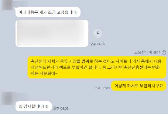 - 축산진흥센터의 핵심 가치와 연계하여 작성