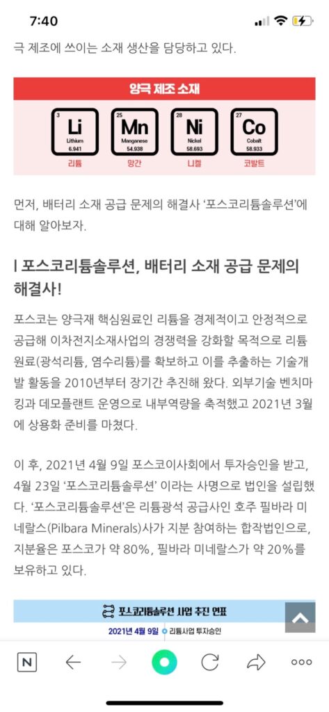포스코리튬솔루션 분석 자료