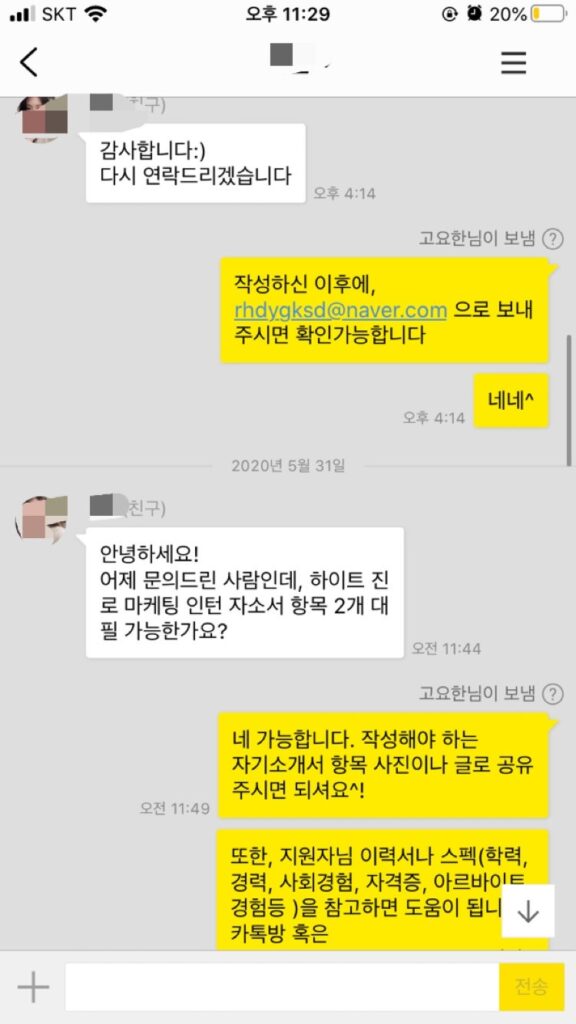 1:1 자소서 컨설팅 의뢰 과정