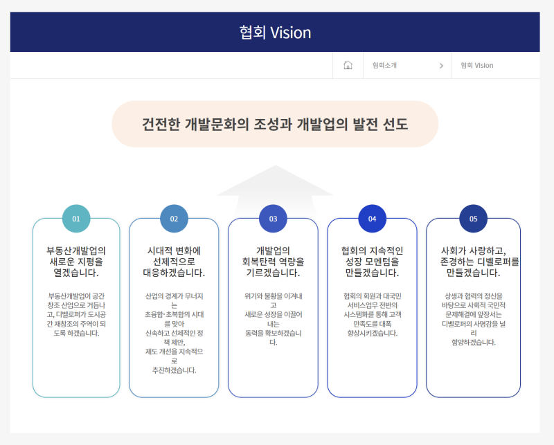핵심 가치: 건전한 부동산 개발 문화 조성, 국민 경제 발전 기여