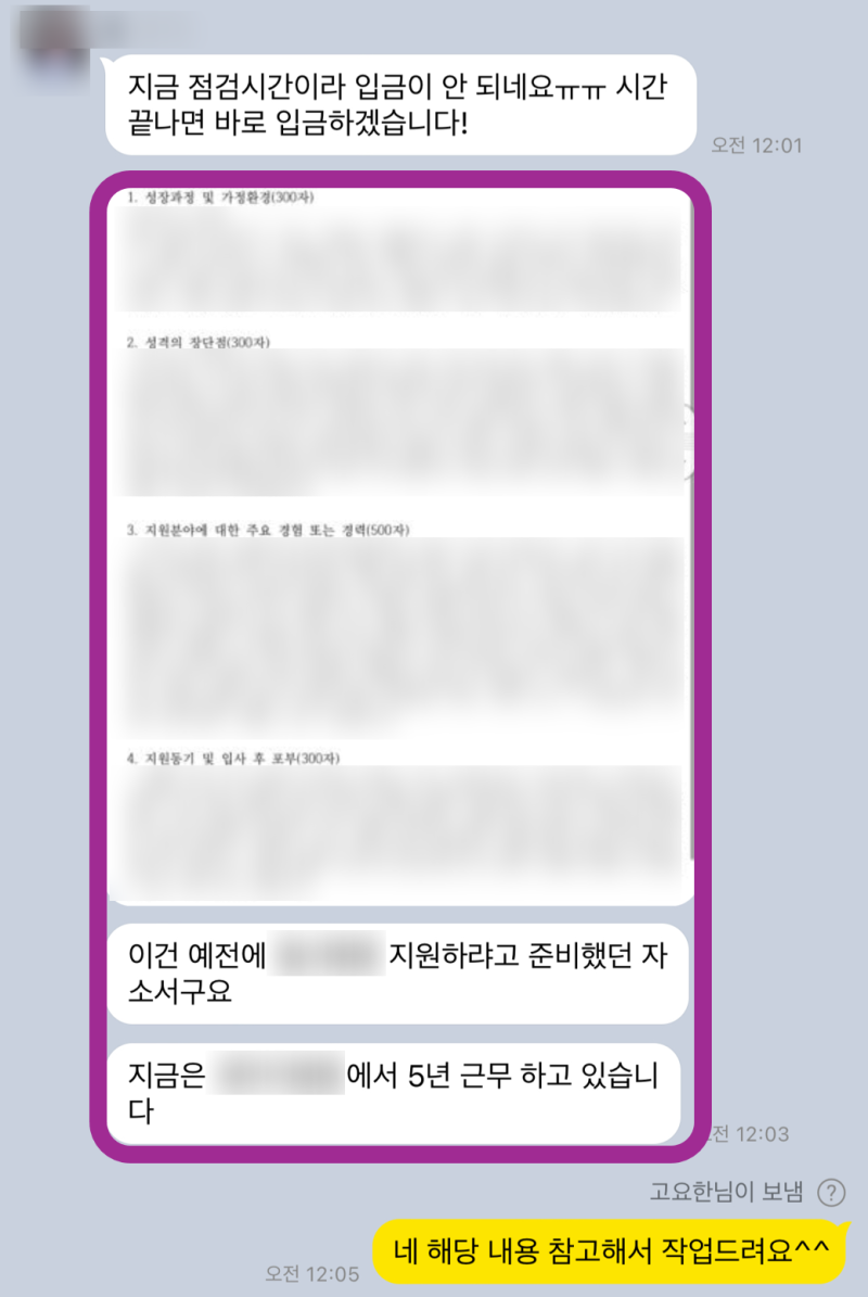 안녕하세요! 10년 이상 자소서 첨삭 전문가입니다. 안녕하세요, 여러분! 10년 이상 자기소개서 컨설팅 경험을 가진 전문가입니다. 누적 3,000건 이상의 자소서 첨삭을 ...