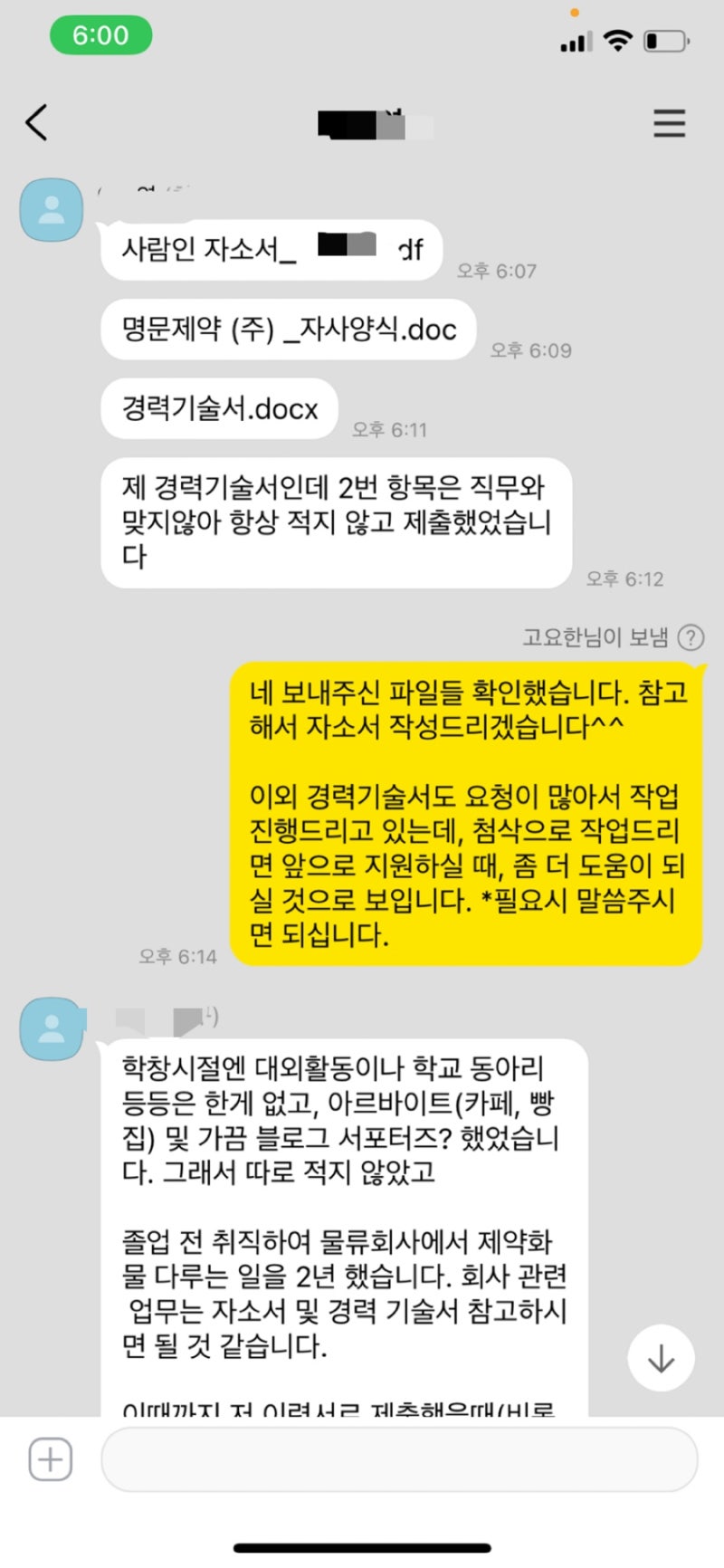 안녕하세요! 10년 이상 자소서 첨삭 전문가입니다. 안녕하세요! 누적 3,000건 이상의 자소서 첨삭 경험과 수많은 대기업 합격 사례를 보유한 자소서 컨설턴트입니다. ...