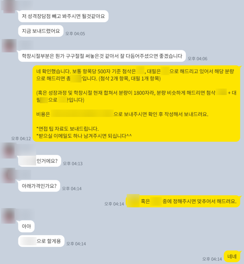 안녕하세요! 10년 이상 자소서 첨삭 전문가입니다. 여러분 안녕하세요! 10년 이상 경력의 자소서 첨삭 전문가입니다. 누적 3,000건 이상의 자소서 첨삭 경험과 ...