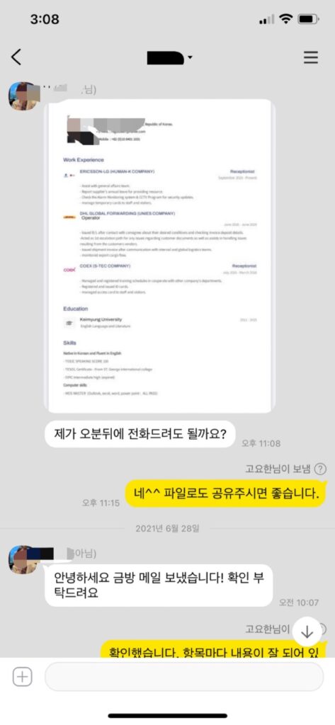 많이 배워갑니다 재의뢰 의사 있구요 업무로 바쁜 저의 삶에 큰 힘이 되어주셨습니다. 제가 여태까지 얼마나 자소서를 못 썼는지 객관화하는 계기도 되었습니다.